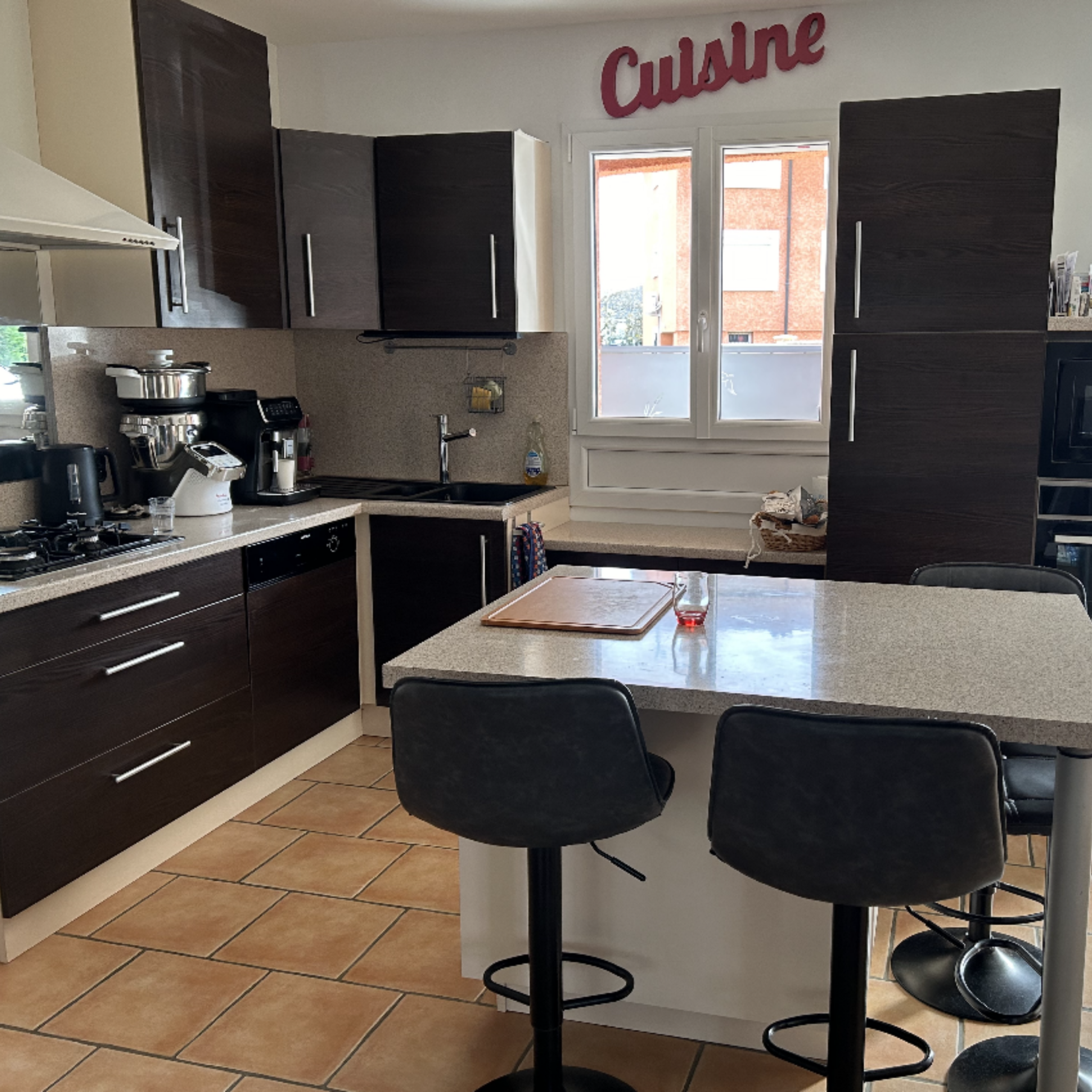 Dans ce projet, nos clients rêvaient d’une cuisine plus moderne et conviviale, avec un îlot central accueillant la cuisson et un espace bar pour partager des moments au quotidien.